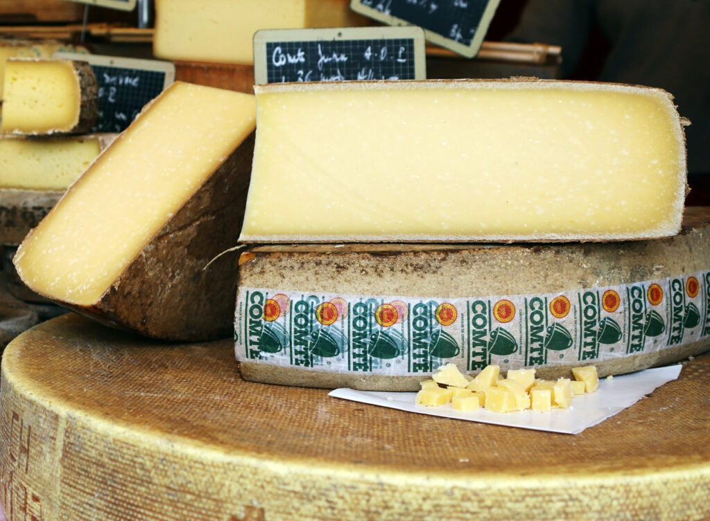 Né au Moyen Âge, le Comté s’est développé grâce aux fruitières : les producteurs mettaient en commun leur lait pour fabriquer de grandes meules capables de se conserver l’hiver. Cette organisation coopérative a façonné l’identité du Comté et sa régularité qualitative. L’appellation (AOC puis AOP) encadre l’aire de production, l’alimentation des vaches, les méthodes de fabrication et l’affinage, garantissant un fromage intimement lié à son terroir jurassien. Aujourd’hui, le Comté est l’un des fromages les plus consommés en France tout en restant profondément attaché à ses pratiques traditionnelles.