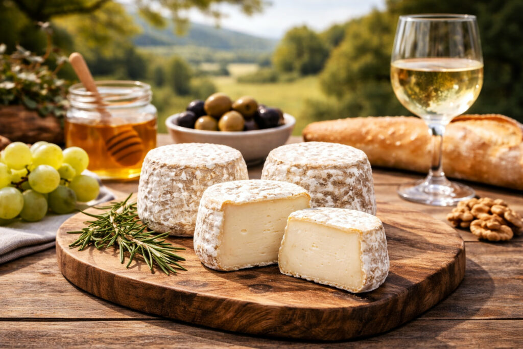 Le Crottin de Chavignol est l’un des fromages de chèvre les plus emblématiques de France. Petit par la taille, immense par la personnalité, il se déguste à tous les stades : frais et lacté, puis plus ferme, plus sec et plus typé avec l’affinage. À maturité, il peut développer des notes caprines franches, de noisette et parfois une pointe de sous-bois. C’est un fromage « école » pour comprendre comment un fromage de chèvre AOP évolue. Sur un plateau, il apporte une progression parfaite ; en cuisine, il est idéal chaud (tartines, salades), mais aussi émietté dans des plats où il apporte du relief.