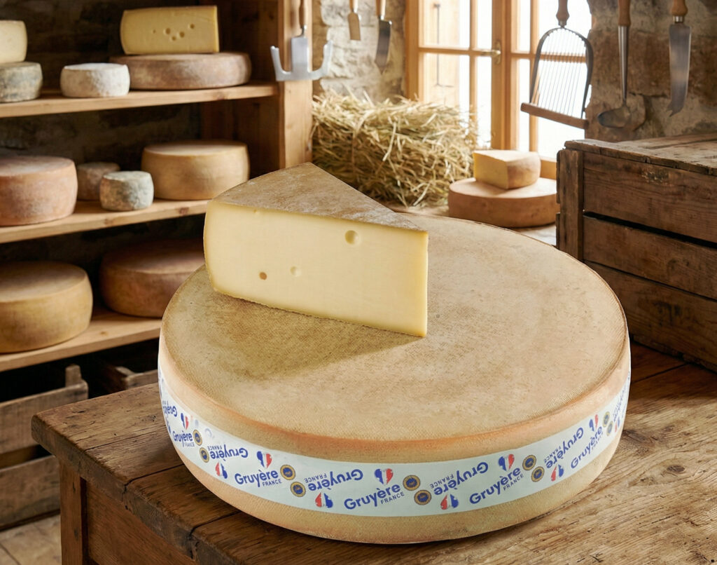Le Gruyère français est issu de la tradition fromagère des régions de l’est de la France. Longtemps produit localement pour la consommation quotidienne, il s’est imposé comme un fromage de cuisine et de plateau très apprécié. L’IGP permet aujourd’hui de distinguer clairement le Gruyère français des autres gruyères européens, en valorisant son origine et son savoir-faire spécifique.