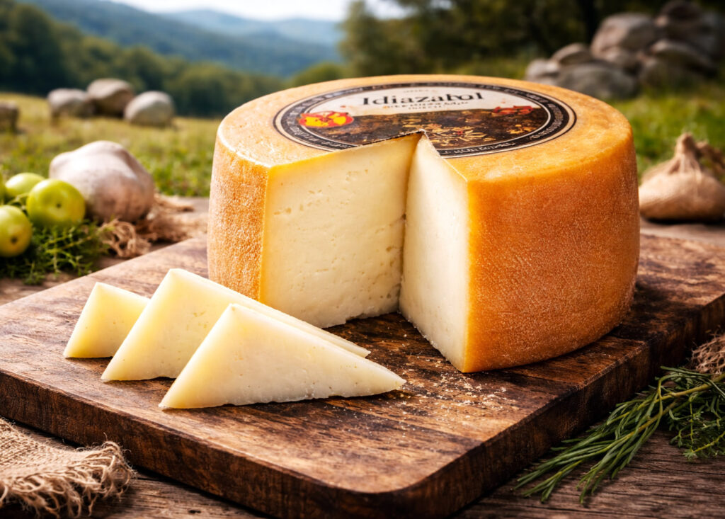 L’Idiazabal est un grand fromage espagnol à AOP, produit au Pays basque et en Navarre à partir de lait cru de brebis Latxa ou Carranzana. Appartenant à la famille des fromages à pâte pressée non cuite, il se distingue par sa pâte ferme et dense, dépourvue d’ouvertures marquées, ainsi que par ses arômes puissants de brebis, de noisette et parfois de fumée. Fromage de montagne élaboré selon des méthodes pastorales ancestrales, il incarne la tradition fromagère du nord de l’Espagne. Selon les producteurs, il peut être fumé au bois de hêtre, ce qui renforce son caractère rustique. L’Idiazabal s’impose comme l’un des piliers des fromages ibériques aux côtés du Manchego.