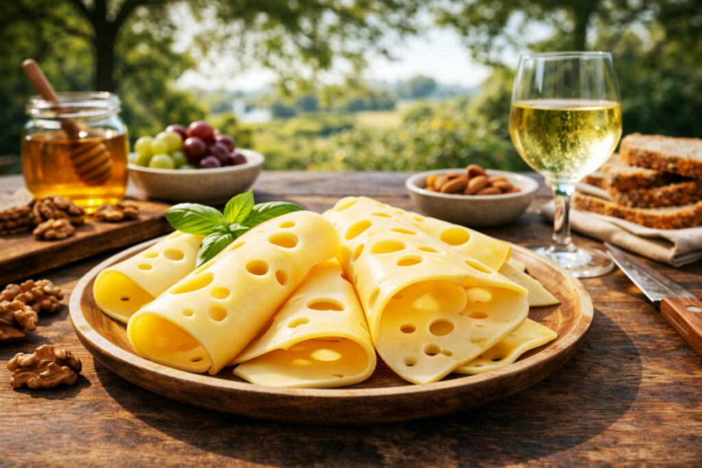 Le Leerdammer est un fromage à pâte pressée néerlandais moderne, connu pour ses trous larges, sa texture fondante et son goût doux et légèrement sucré. Développé dans les années 1970, il s’inspire des fromages alpins suisses tout en adoptant un profil plus crémeux et accessible. Fabriqué à partir de lait de vache, il est aujourd’hui largement consommé en Europe, notamment pour son aptitude à la fonte et son goût consensuel. Bien qu’il ne bénéficie pas d’AOP, le Leerdammer est devenu une référence des fromages dits « de type emmental ».