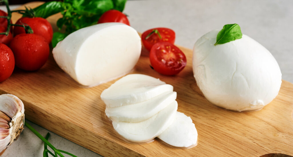 La mozzarella appartient à la famille des fromages à pâte filée. Après caillage, la pâte est étirée dans de l’eau chaude jusqu’à obtenir une texture lisse, élastique et brillante, caractéristique de ce type de fromage.
