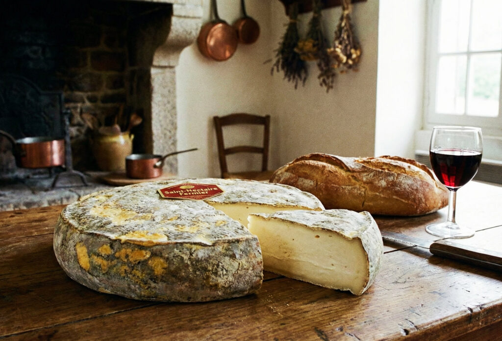 Le Saint-Nectaire appartient à la famille des fromages à pâte pressée non cuite. Sa croûte naturelle se forme pendant l’affinage, favorisant des arômes de cave et une pâte souple.
