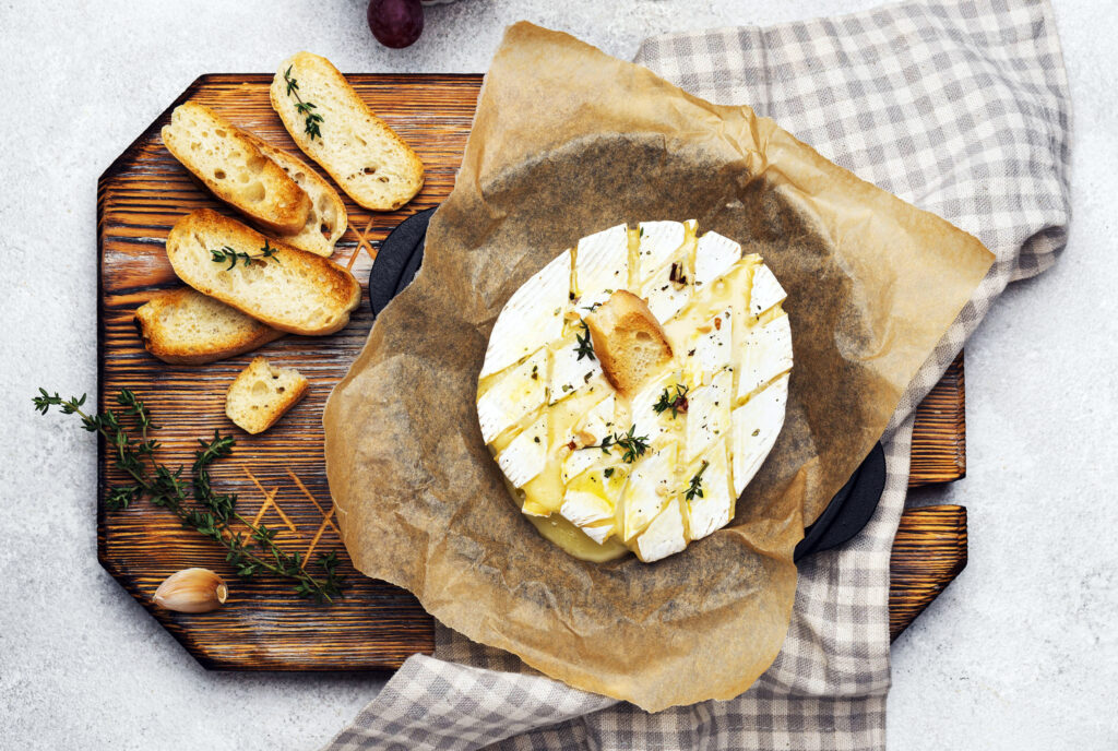 Le camembert rôti offre une texture coulante et des arômes lactés prononcés.